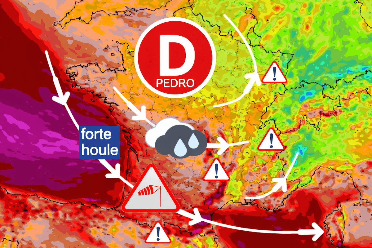 TempĂȘte Pedro en France : vigilance rouge dans 5 dĂ©partements, vents violents, pluies et crues. Suivez les alertes mĂ©tĂ©o et les prĂ©visions en direct.